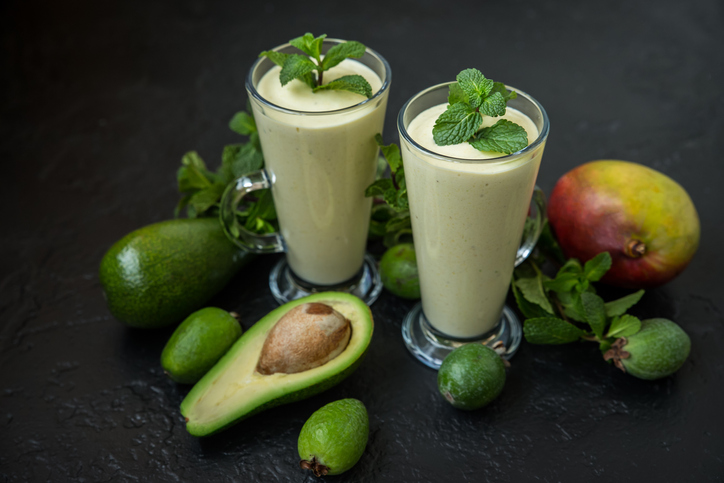 И авокадото, и мангото са пълни с полезни хранителни вещества. Добавянето на авокадо в това смути му придава кремообразна и кадифена текстура. Тъй като авокадото няма отчетлив вкус, то добре се съчетава с мангото. Мангото и портокаловия сок пък са достатъчно сладки и няма нужда да добавяте подсладител. Ако приготвяте смутито с прясно манго, добавете няколко кубчета лед, които да охладят напитката.