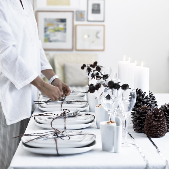 Ако искате празничната ви маса да придобие по-модерен вид, включете черния цвят в аранжировката ѝ под формата на подложки, съдове, свещници или орнаменти.
